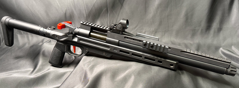 ボルト操作をワンアクションに集約するチャージングハンドルスタイル。