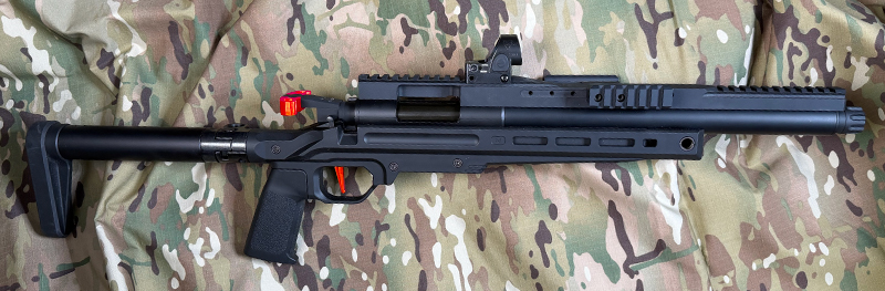 右でも左でも利き手や環境に気を遣わず、射撃体勢に入ることができるカスタムパーツです。