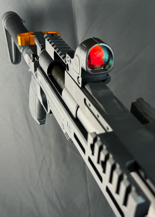 ボルト操作をワンアクションに集約するチャージングハンドルスタイル。